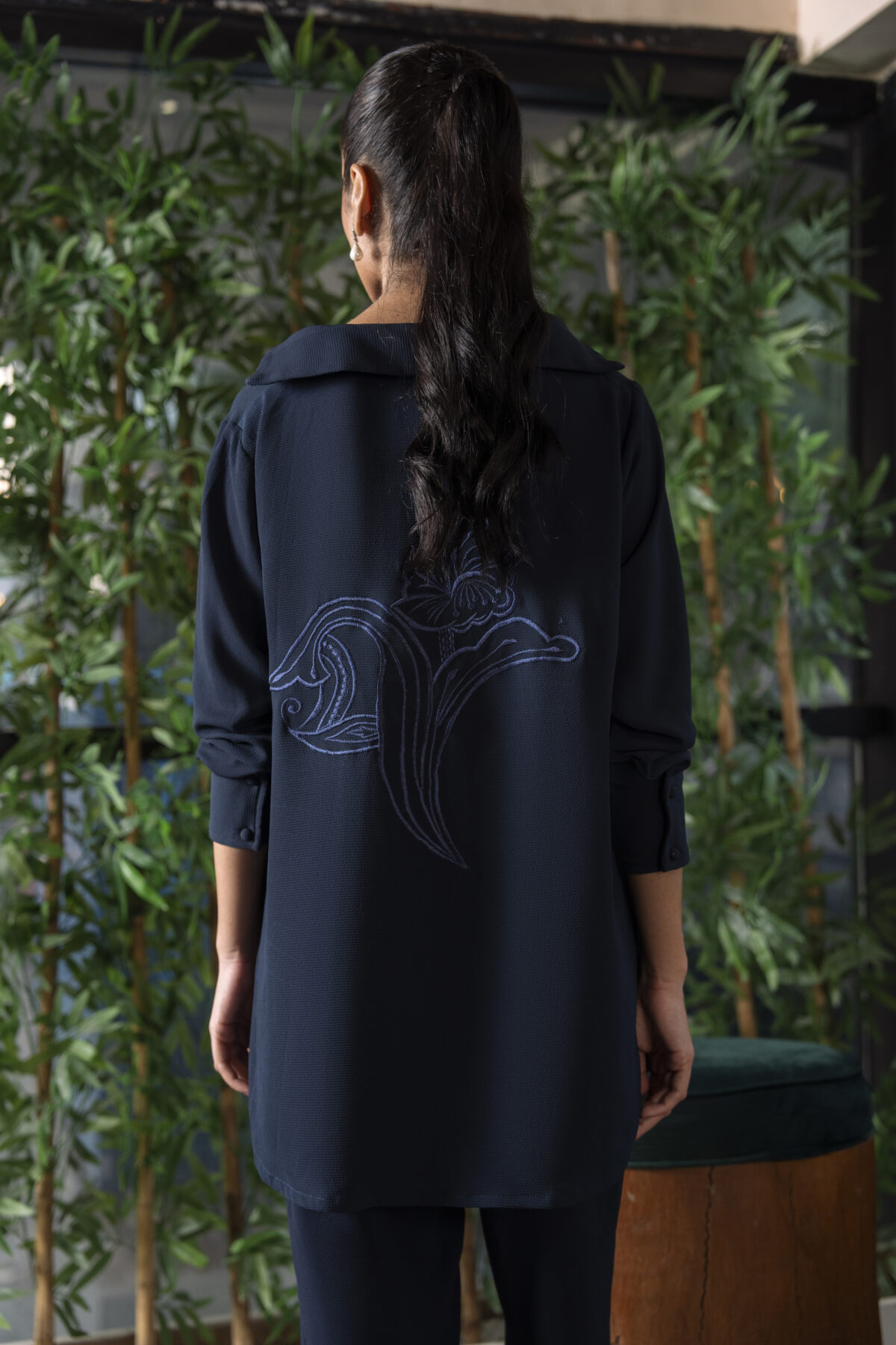 Noir Bloom is crafted in a soft, breathable cotton blend with a relaxed, fluid silhouette. Subtle floral embroidery graces the back, adding depth and artistry to timeless black.